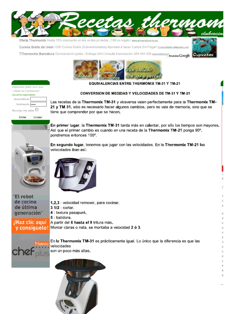 Equivalencias Thermomix Tm31 Tm21 Pdf